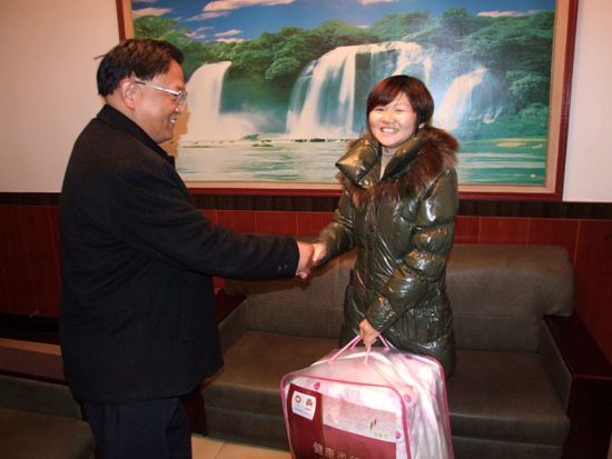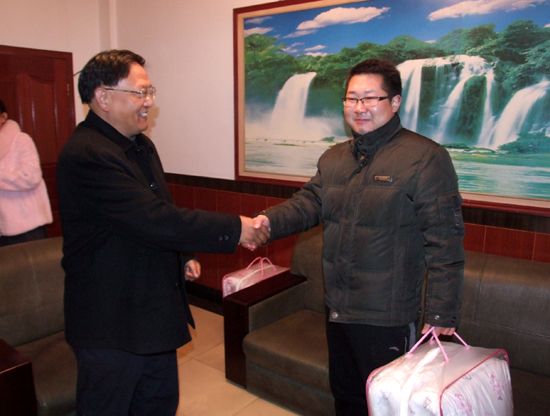 党委陈云书记、副校长杨宁、工会主席吴发平与两位同志合影