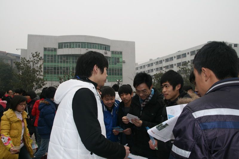 课间操时间,2010届毕业生们组队到各个教室去播放宣传视频,每进一个班都引发了一阵不小的轰动。从同学们期待的眼神中,能看出学弟学妹们对大学的渴望,2010届毕业生们也感到了自己活动的意义,为了学弟学妹们,他们累并快乐着。