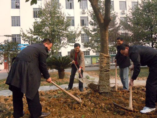 3月12日,在植树节到来之际,宜都一中2011届高三学生在学校进行了为母校捐树活动。对于学生来说,这次植树活动的意义是深远的,因为即将要离开母校,树苗的成长既见证着自己在母校留下的学习和生活的点点滴滴,又美化了校园环境,这是学生报答母校的培养教育之恩。学校校长、党委书记周朴华、副校长杨宁、高三年级主任邓斌等老师亲自种下了这颗代表学生感恩母校的感恩树。