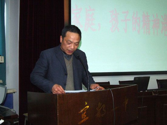 宜都一中家长学校校长、党委书记、校长周朴华做“家庭,孩子的精神港湾”的专题讲话