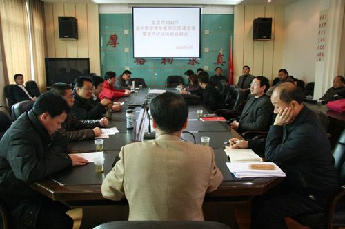6日下午2:30,在我校科教办公楼四楼会议室进行了本次竞赛的总结大会。大会由宜昌教研中心数学教研室主任向立政老师主持,宜昌市一中的林绍华主任、当阳市一中的数学特级教师田新老师分别对说课、优质课进行了精彩的点评,向立政老师对宜昌高中数学教师提出了5点希望,并公布了比赛结果。我校青年教师邹庆禹获得重高组一等奖、宜都市外校田松元老师获得普高组一等奖。本次活动承办单位宜都一中副校长徐振祥老师做了总结发言。