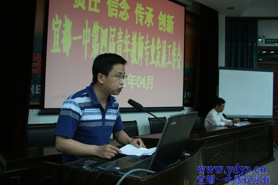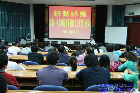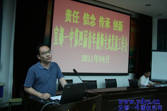 为进一步增强青年教师责任感,坚定教育理想和信念,传承宜都一中人的主题精神,开拓创新,促进学校持续、科学发展,值“五四”青年节到来之际,我校于4月25日晚上7:30在综合楼多功能厅二楼召开了以“责任 信念 传承 创新”为主题的第四届青年教师专业发展工作会,参加会议的对象是三十五岁及三十五岁以下的青年教师。全体行政干部、教研组长、老教师代表参加了会议。大会由学校党委青年委员、教科室主任程仁新老师主持。