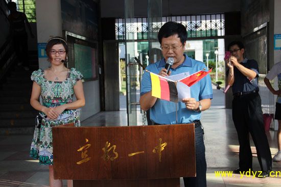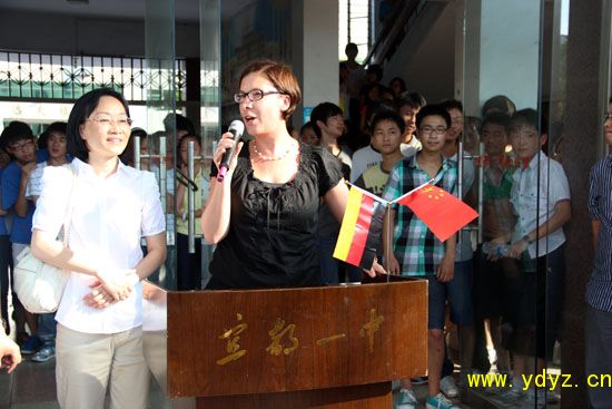 在欢迎仪式上,德国师生一行受到了我校师生以及学生家长的热烈欢迎,周朴华校长代表学校致欢迎词,赫尔德女士代表访问团表示感谢,并希望此次中国行能使德国学生进一步了解中国,使中德的友谊之花长青。