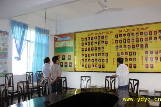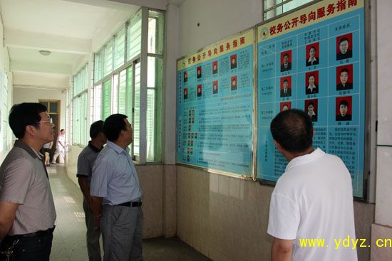 在党委书记、校长周朴华和副书记陈云陪同下,石明章同志一行参观了我校党务公开导向服务栏和党员活动中心,查阅了创先争优活动相关资料。周校长向领导汇报了我校党建工作,党建成果和庆祝建党90周年系列活动情况。石明章同志高度评价了我校的党建工作,多次强调“要将经验在全市全面推广”。