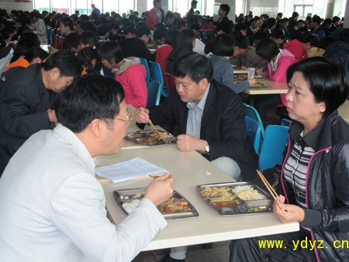 严市长一行首先来到学生食堂,认真查看饭菜品种、价格和质量,详细询问学生就餐消费情况,并与学生共进午餐。随后,各位领导来到教学楼与部分同学亲切交流,倾听他们的心声和要求,详细了解大家的学习生活状况。