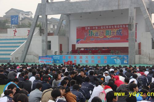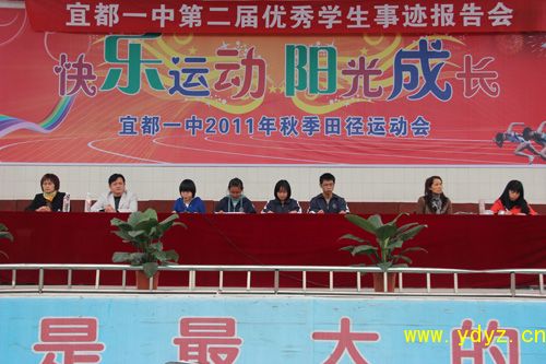 日前,宜都一中第二届优秀学生事迹报告会如期举行,全体同学齐聚运动场,聆听了5位优秀同学的事迹报告。