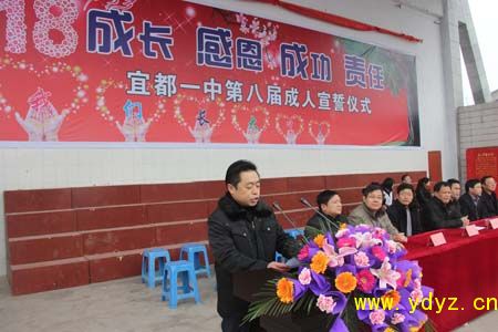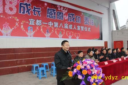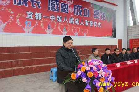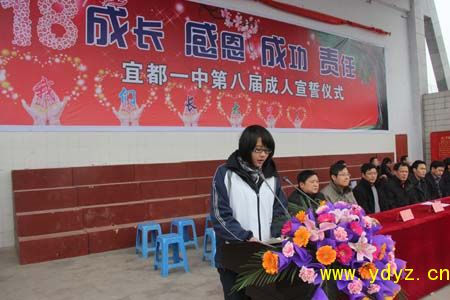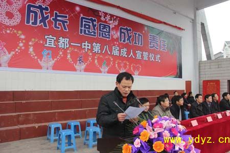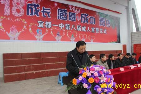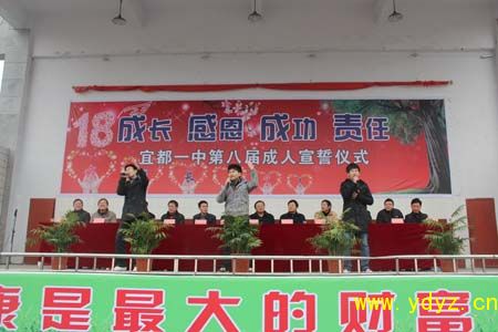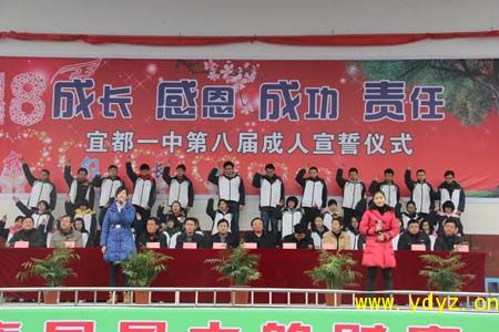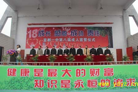 2012年元月7日上午10时,宜都一中第八届成人宣誓仪式隆重举行,2012届高三年级近千名学生家长与自己的孩子一起,共同庆祝2012届高三学子的十八岁成人礼。