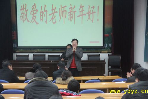 会议在全体教职工观看宜都一中毕业学子对母校的祝福视频中开始,首先,学校党委书记、校长周朴华同志,副校长徐振祥同志分别向全体教职工拜年,之后,周校长对新学期的工作作出了详细的部署和系统的要求,并把2012年定为课程建设年,强调素质教育,坚持课改。接着,徐校长对学校开学及二月工作作出安排。