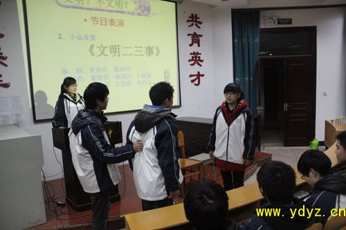 三月是我校的文明礼貌月,为进一步提高我校师生的文明素质,引导青年学生讲文明话、行文明事、做文明人,3月21日,学校政教室、团委和高二年级组在多功能厅二楼联合举办了“文明伴我行”主题班团活动展示课。