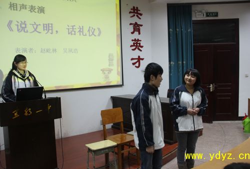 接着,江璐等人表演了校园小品,通过诙谐的方式揭示校园内的不文明行为和现象,引导同学们反思自我行为,摒弃不文明习惯,提高自身素质。随后同学们表演了诗朗诵,抒发了自己对文明、和谐的向往之情,最后,全体同学共同宣誓,立志做文明青年,讲文明,树新风,共建和谐校园。