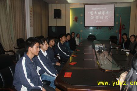 “思杰助学基金”是我市某爱心人士在我校新设立的旨在帮助家庭经济困难的优秀学子完成学业的又一资助项目,接受该项资助的同学将每人每年得到5000元的现金资助直至大学毕业。经过个人申报、教师家访、学校审核并公示后,高一年级10名同学获得该项资助资格。资助人汪总昨天亲自到校为同学们发放资助款并与同学们座谈,鼓励他们克服困难、努力学习,以一种阳光、健康的心态面对生活与学习,并在将来回报社会。