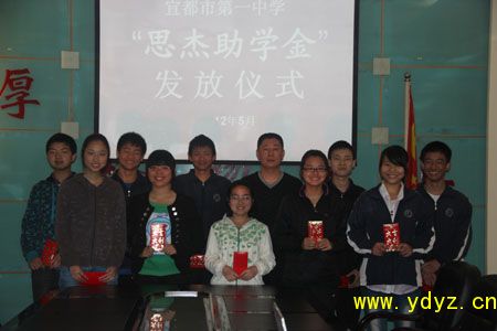 昨日,宜都一中高一年级10名同学每人领到了首批2000元的“思杰助学金”。