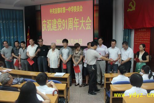 庆祝大会在雄伟庄严的《国际歌》中拉开序幕。周志刚等4名预备党员按期转正,发展胡芳芳等9名新党员。学校党委表彰刘健等19名同志为“优秀共产党员”。 学校党委书记、校长周朴华同志在大会上致辞,向按期转正的预备党员和新党员表示祝贺,向为学校发展辛勤工作的党员同志们表示感谢。同时提出三点希望,一是认清形势,抢抓机遇,推进我校各项事业不断发展;二是积极行动,勇于创新,推进我校名校建设向纵深发展;三是凝聚合力,立足实效,为我校进一步发展提供强有力的组织保证和思想保障。今年,我们连续第七年取得辉煌高考成绩,我们要更加团结和谐的校园氛围,更加求真务实的工作作风,推动我校教育教学工作又好又快的发展,为把我校建设成楚天一流名校作出新的、更大的贡献!高三学生李晓莉代表新党员,宋双双代表入党积极分子在会上发言。党委委员程仁新同志为业余党校学员颁发了结业证书。