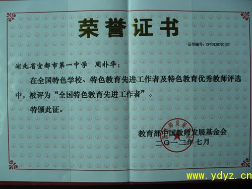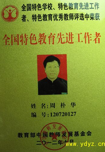 7月18日,在北京召开的全国特色学校、特色教育先进工作者表彰大会上,我校校长周朴华同志因在办学特色和管理创新等方面成绩显著,被表彰为“全国特色教育先进工作者”,是全国高中学校中少数获此殊荣的代表。