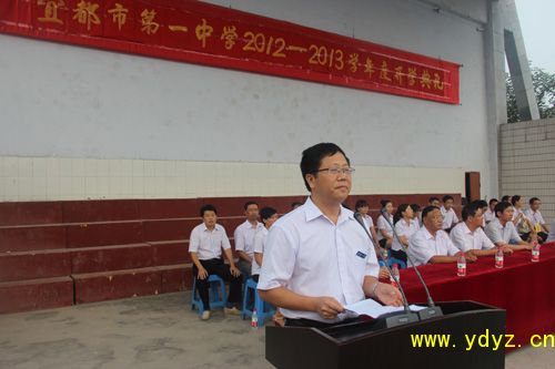 9月1日上午,我校在后操场举行2012—2013学年度开学典礼。宜都市教育局副局长孙大勇、学校领导班子、中层干部、全体教师及学生近3000人参加了本次开学典礼。大会由学校副校长徐振祥主持。