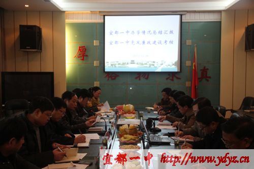 2012年12月26日,宜都市教育局党委书记、局长周朴华率领市教育局党风廉政建设考核小组来我校进行廉政考核和办学情况调研。考核活动由考核组组长教育局副局长王家良主持。