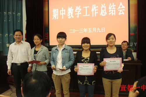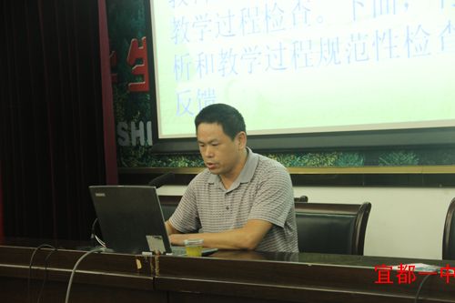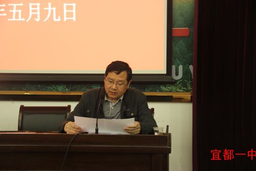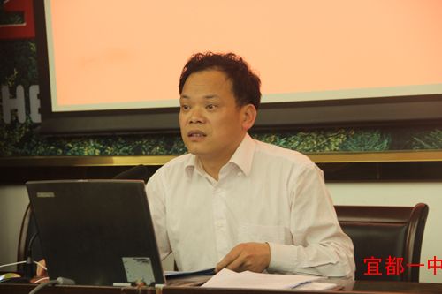 教务室主任邓斌对本学期的教学工作做了全面回顾,通报了高一、高二年级参加宜昌市期中统考和高三年级4月全仿真模拟考试暨七市州联合考试的成绩,分析了我校与夷陵中学、宜昌一中的差异,与其他各县市一中的优势,重点就校内各学科内部差距做了细致分析。接着,邓主任介绍了期中学生评教评学情况并通报了各班最受欢迎学科教师名单。最后,邓主任就教学工作中所存在的问题作简要分析,并向全体教师提出了中肯建议,其中不乏精辟论述,比如对于备课,要切实做好备教材、学情、设问、板书四备,还要认真做好教学反思。
