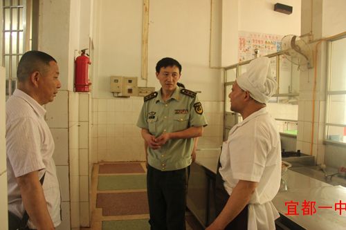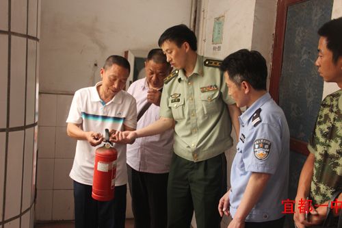 5月24日上午,宜都市公安局常委、消防大队教导员马明一行来到我校检查消防设施情况。我校党委书记校长徐振祥、副校长何阳平以及相关部门责任人接待并陪同进行了检查,检查组一行走进逸夫楼、学生公寓、食堂、教学楼,了解了学生寝室管理情况、食品卫生安全情况,查看了安保人员的配备、视频监控系统、报警系统的运行情况,检查了各类防暴器材、消防器材的配备情况,对我校“人防、技防、物防”落实到位,夯实“注重文化浸润”安全基石的特色管理,给予了高度的评价。
