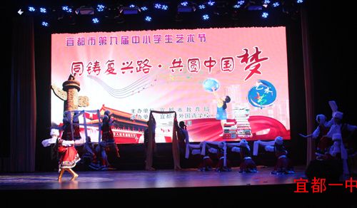2013年5月29日,宜都市第九届中小学生艺术节在市外校开幕。这次艺术节是以文化、艺术的元素为载体,激励学生在青春的舞台上追逐自己的梦想,做快乐的追梦人,全面提高个人素质,为未来积极投身中国梦的建设积聚正能量。充分体现了本届艺术节的主题“同铸复兴路,共圆中国梦”。