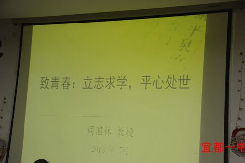 周教授重点谈到了在目前的中学教育中,学生如何自处,他非常体谅现代中学生快节奏、大容量的学习,提出在现在学习中最重要的是心态,并从自己治学的角度出发,谈到了心态的重要性。