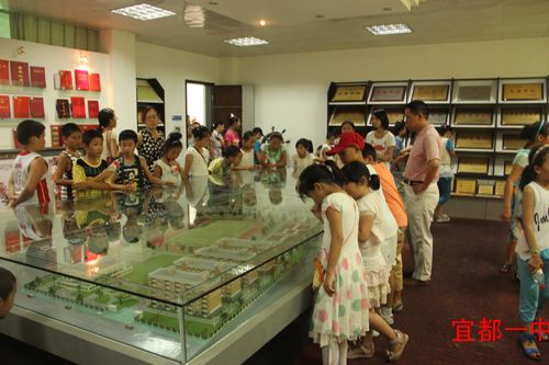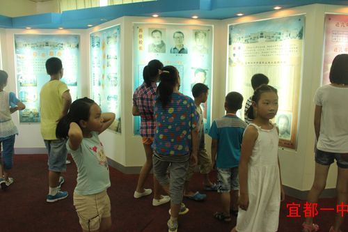 7月25日下午3:00,宜都市教育局组织的2013年暑期“关爱留守子女夏令营”参观团来到我校,参观我校通用技术实验室、计算机室、荣誉室、陈列室等。我校教务室主任邓斌全程参与接待,邓斌主任向大家介绍了我校的峥嵘校史,小营员们在荣誉室、陈列室领略我校的校园文化、在通用技术实验室亲身体验技能的重要性。