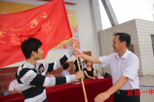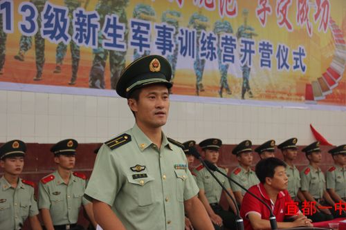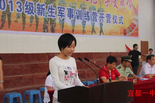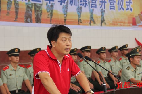 宜昌市武警支队领导、宜都一中军事训练营营长徐志金在讲话中祝贺新生光荣成为宜都一中人,希望同学们能够继承人民解放军的优良传统,珍惜宝贵的锻炼机会。“宝剑锋从磨砺出,今天你们听从指挥,克服困难,挑战自我,明天将担起国家重任,为人民增光添彩。让我们以奋发的精神状态在磨练意志的练兵场上共渡七天的军训生活。”
