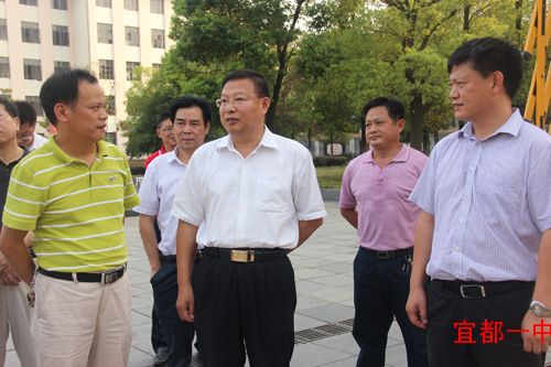 省政法委副书记杨智详细询问了我校在创建平安校园、社会治安综合治理等方面的具体做法和经验;对我校今年高考取得优异成绩给予了充分肯定,高度评价高三一班取得4人进入宜昌市理科前10名,宋洁以678分摘获宜昌市理科状元的突出成绩。