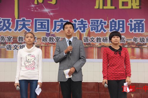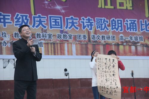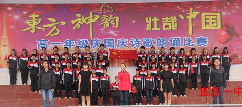 为隆重庆祝祖国的生日,培养学生的爱国热情,丰富学生课余文化生活,我校教务室、教科室、政教室、团委、高一年级组、语文教研组联合举办了“东方神韵,壮哉中国”大型诗歌朗诵比赛。