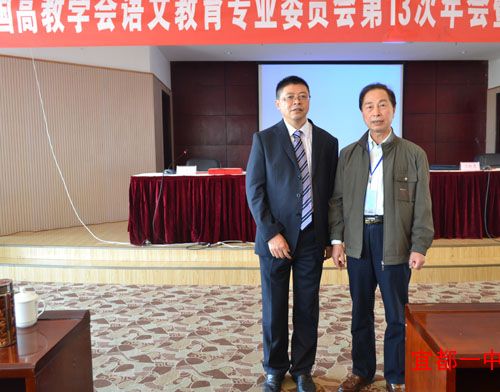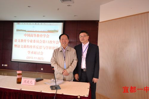 中国高等教育学会语文专业委员会会长周庆元教授与杨老师合影