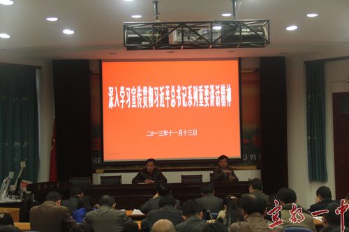 程仁新副书记首先组织集中学习《中共湖北省委关于深入学习宣传贯彻习近平总书记系列主要讲话精神的通知》文件精神,结合校党委印发的专题学习资料,分别从习近平总书记关于中国特色社会主义的重要论述、习近平总书记关于中国梦的重要论述、习近平总书记关于改革开放的重要论述、习近平总书记关于科学发展的重要论述、习近平总书记关于党的建设的重要论述以及习近平总书记在湖北考察时的重要讲话精神等六个方面对全体党员教师进行了集中培训学习,并对本次学习活动作出了具体安排,要求各支部及全体党员教师认真开展学习,撰写学习笔记和学习体会文章,把此次学习作为提高自身认识、促进本职工作的重要推手。会上,程仁新副书记还组织全体党员教师学习了十八届三中全会《公报》,要求全体党员教师关注时事,深刻领会三中全会精神,以实际行动在工作中履行党员模范带头作用。