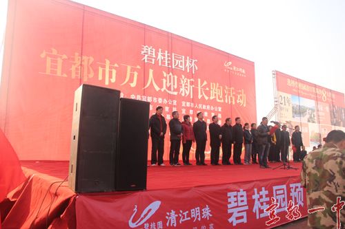 “迎新健康跑”掀起了全民健身活动的高潮。简短而隆重的起跑仪式,随着市委领导宣布“2014年宜都市‘碧桂园杯’迎新长跑”的起跑和鸣枪示意,长跑队伍浩浩荡荡出发。活动起点为清江明珠,途经清江二桥、清江一桥、清江路、长途汽车站、人民广场。