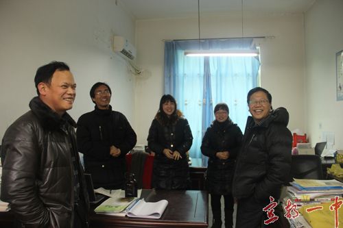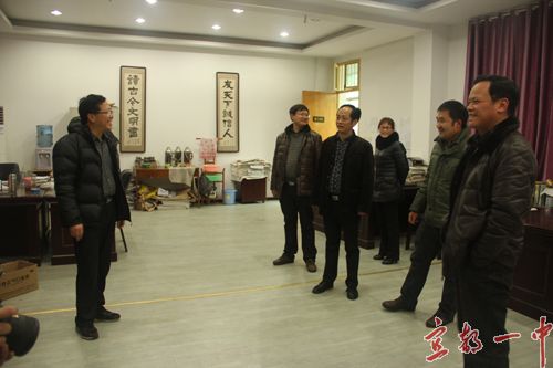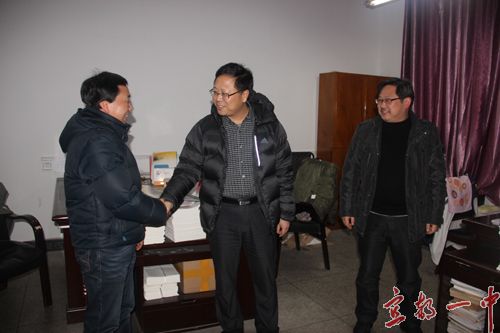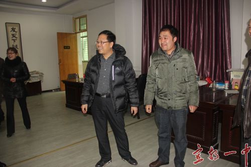 校长徐振祥对周局长一行的到来表示非常感谢,并表示: 在新的一年里,我校将继续科学规划,着力提高领导班子的凝聚力和战斗力;加强教师队伍建设,狠抓师德师风建设和校本教研工作,积极落实教师教学工作执行力;完善德育工作机制,落实德育教育常规,加强班主任班级管理,突出开展主题教育活动,促进学生良好习惯的养成;大力开展各种活动,丰富校园文化生活,全面打造“活力校园”;增强师生安全意识,构建安全、和谐校园。真正使我校成为一所“学生乐学 教师乐教 家长乐意”的省级示范高中,为一中教育教学质量的腾飞做出应有贡献。