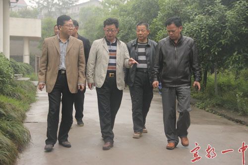 4月18日,宜都市规划局局长谭龙飞、教育局局长周朴华一行来我校调研校园南区规划建设工作,校长徐振祥及总务室负责人全程陪同。谭局长一行登上女生宿舍楼楼顶,仔细察看了校园南区及周边布局,谭局长强调,学校规划将考虑今后的发展实际,做到规划科学合理,高标准建成、建好,要根据实际情况,认真做好校园规划征地的前期准备工作。