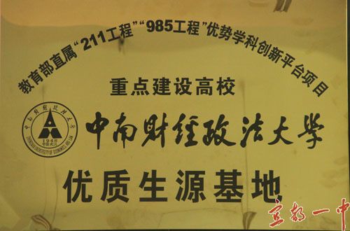 近日,我校被授予“中南财经政法大学优质生源基地”荣誉称号。
