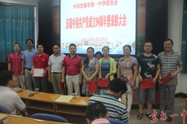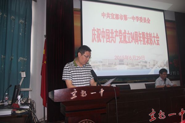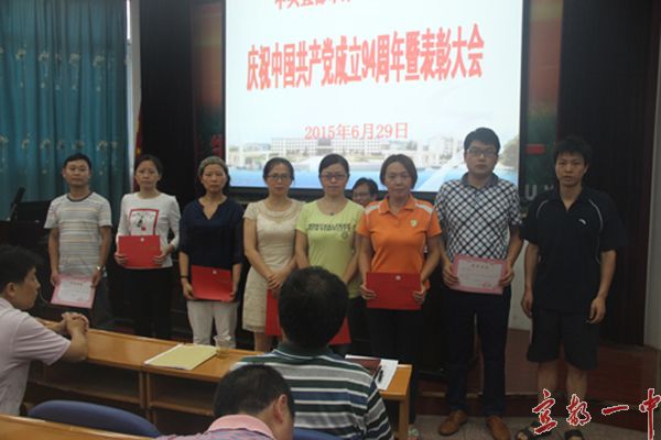 会上宣读了市教育局党委《关于表彰先进基层党组织、优秀共产党员、优秀党务工作者的通报》和校党委《关于表彰2015年度优秀共产党员的决定》,汪明等8名党员教职工受到局党委表彰,学校党委、高三年级支部被授予“先进基层党组织”称号,王波等33名同志被授予学校“优秀共产党员”荣誉证书。