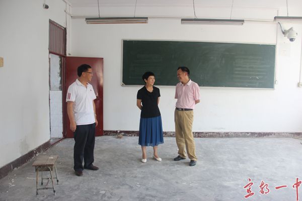 骄阳似火,赤日炎炎。8月7日上午,副市长严永梅、教育局局长周朴华来我校检查教学楼维修改造项目建设情况。